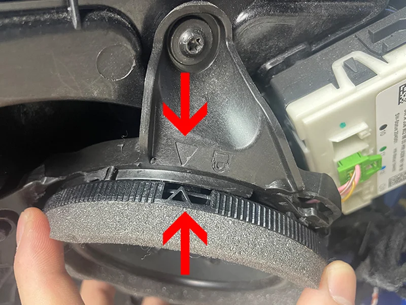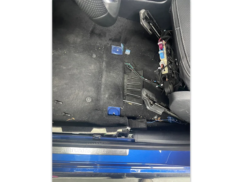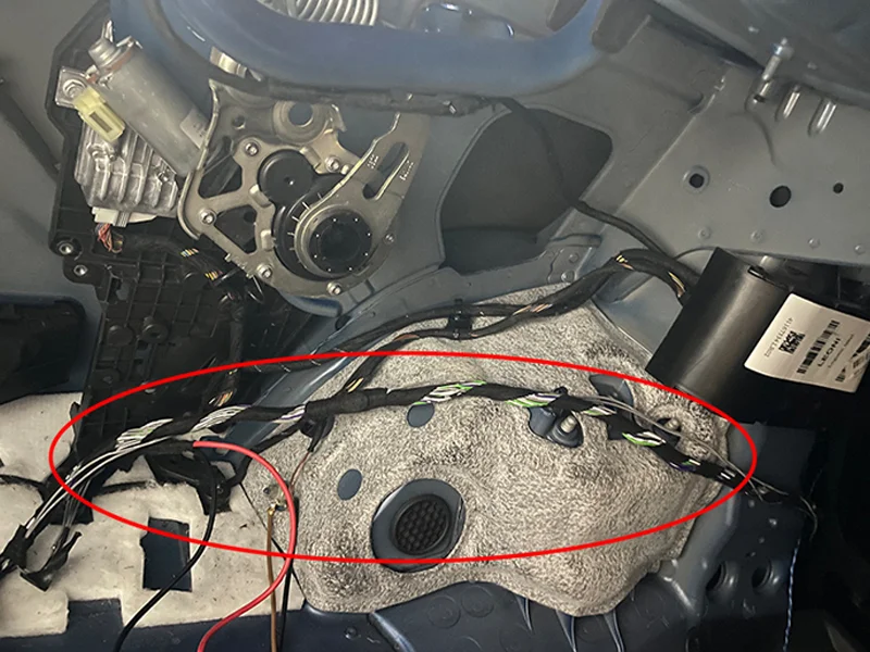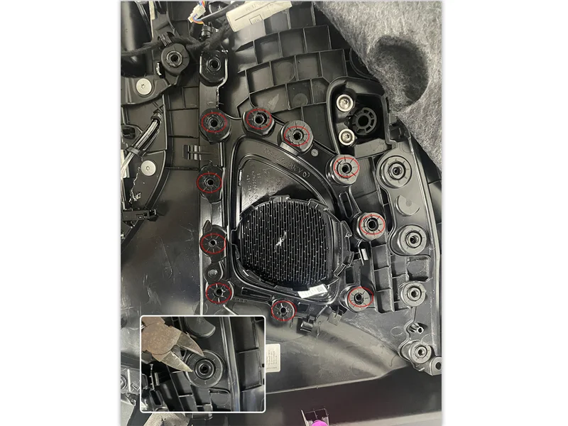 Remove the original rubber housing, install rainbow audio’s woofer, one each under the driver seat and the front passenger seat